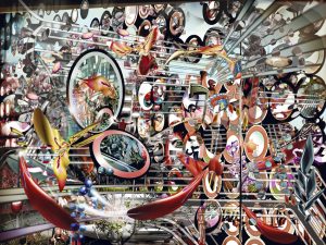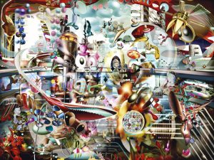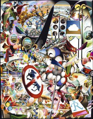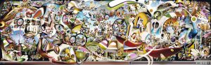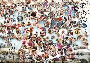 The human eye favours order, while our thoughts tend to be chaotic: my former works were large format panoramas consisting of countless fragments of incoherent information -in its “all over”-arrangement forming a universal order out of the chaos of pictorial narrative by consideration: the rules of aestheticism slowly built up the order during months of arranging one particular work.