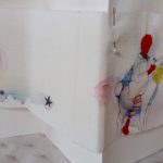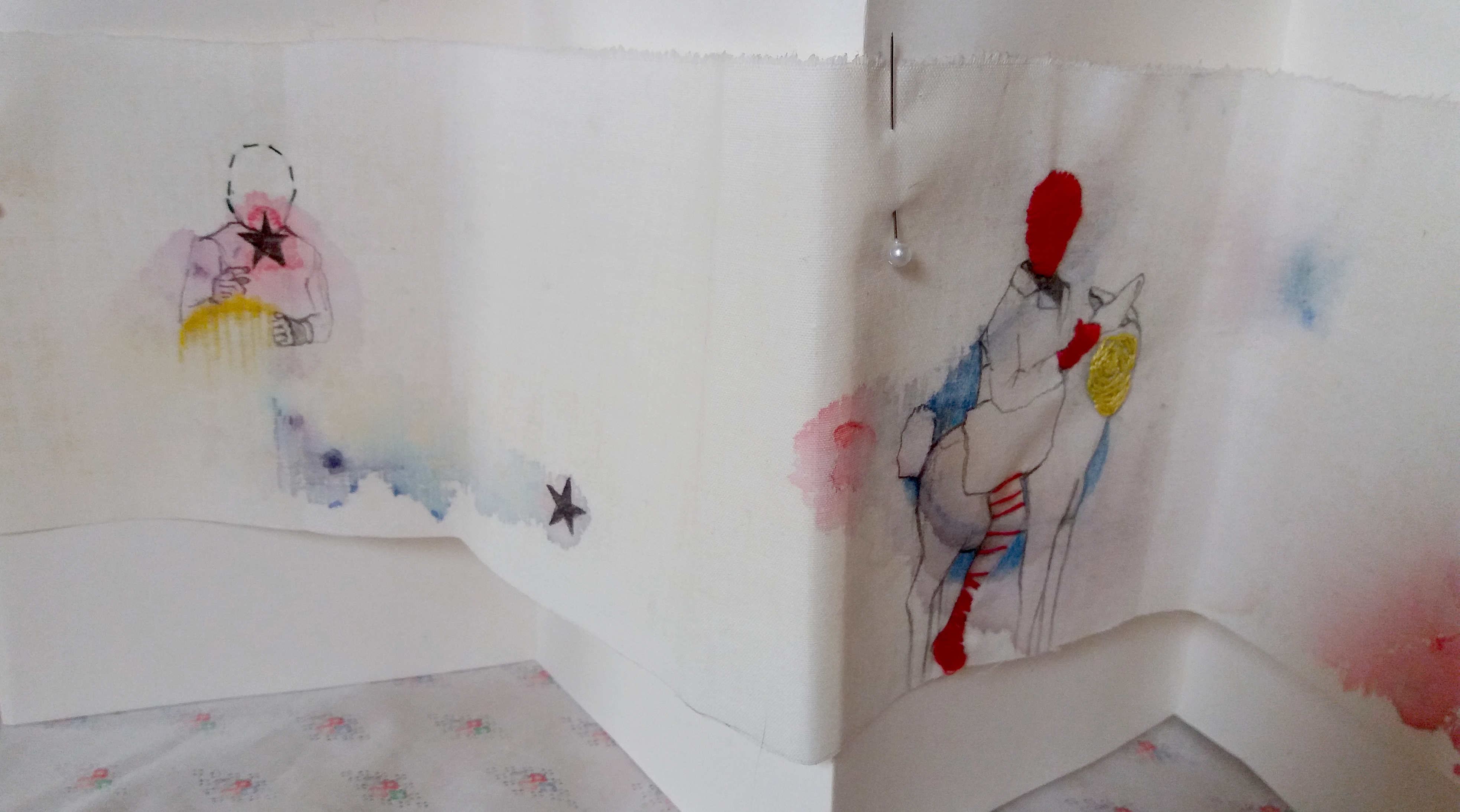 Watercolour, ink, graphite and thread on textile