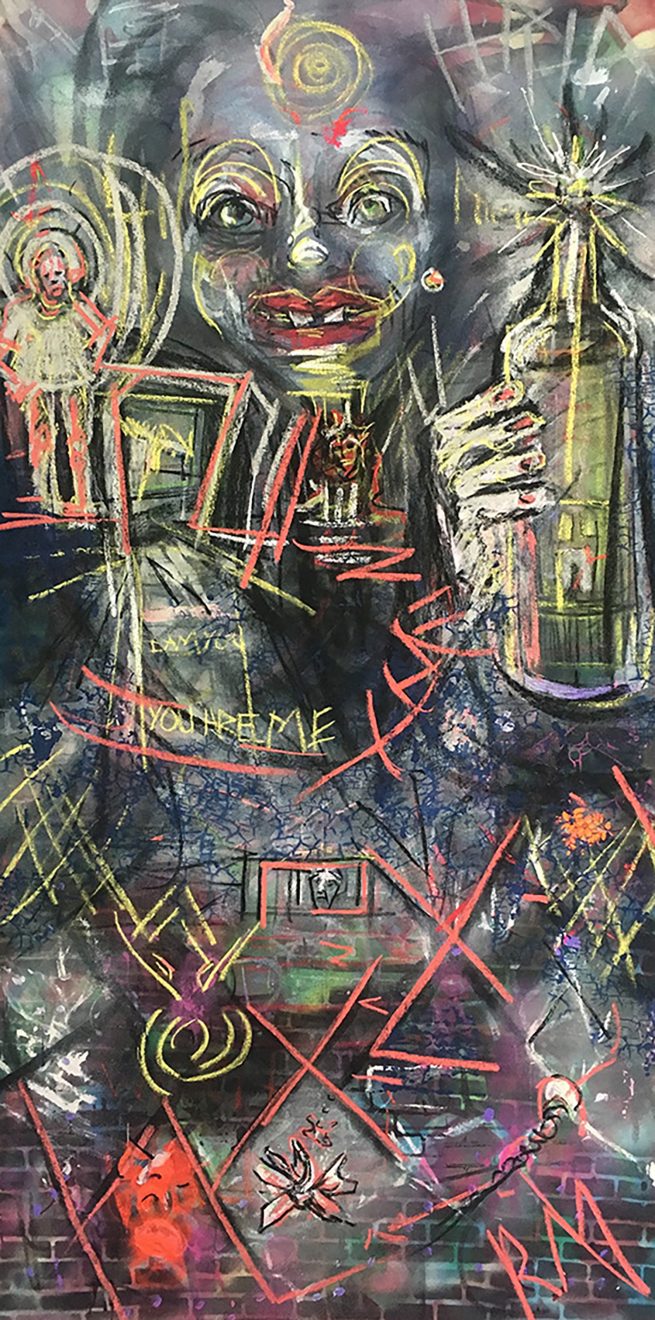 2018 Charcoal, pastel, spray paint, acrylic, and oil on canvas 183 x 92 cm