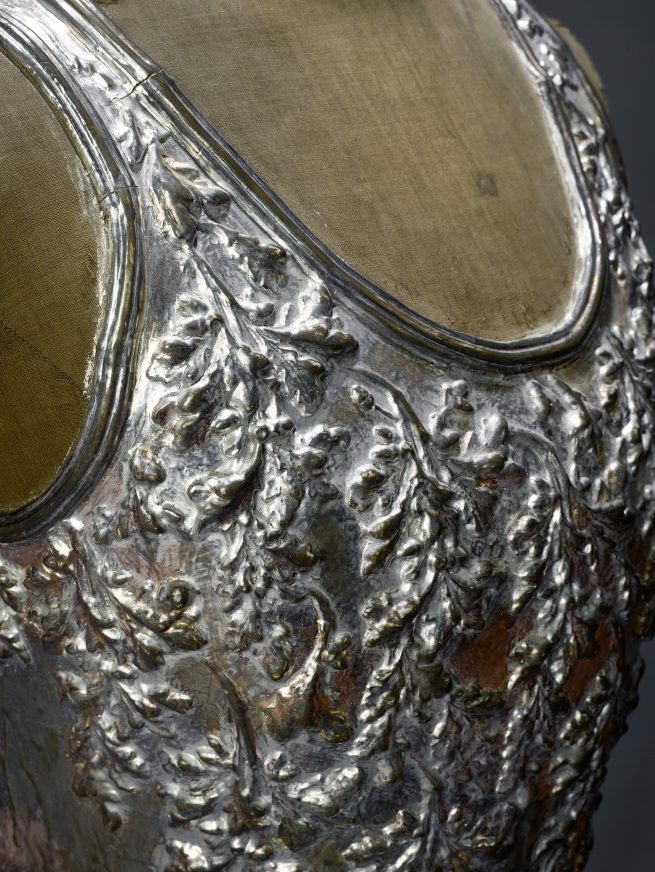 Papier-mâché, silver leaf on brown chalk, chalk, gilded
