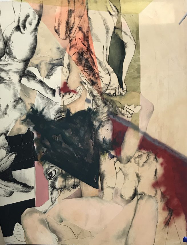 2018 Acrylic, coal and spray-Paint on canvas 200 x 150 cm