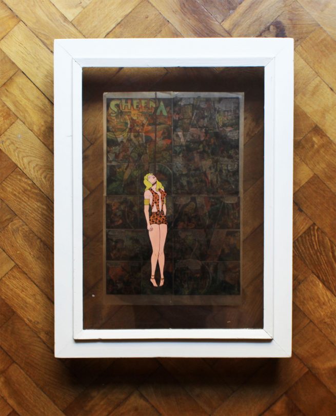 Mixed Media (resin, acrylic, ink on comic book pages)