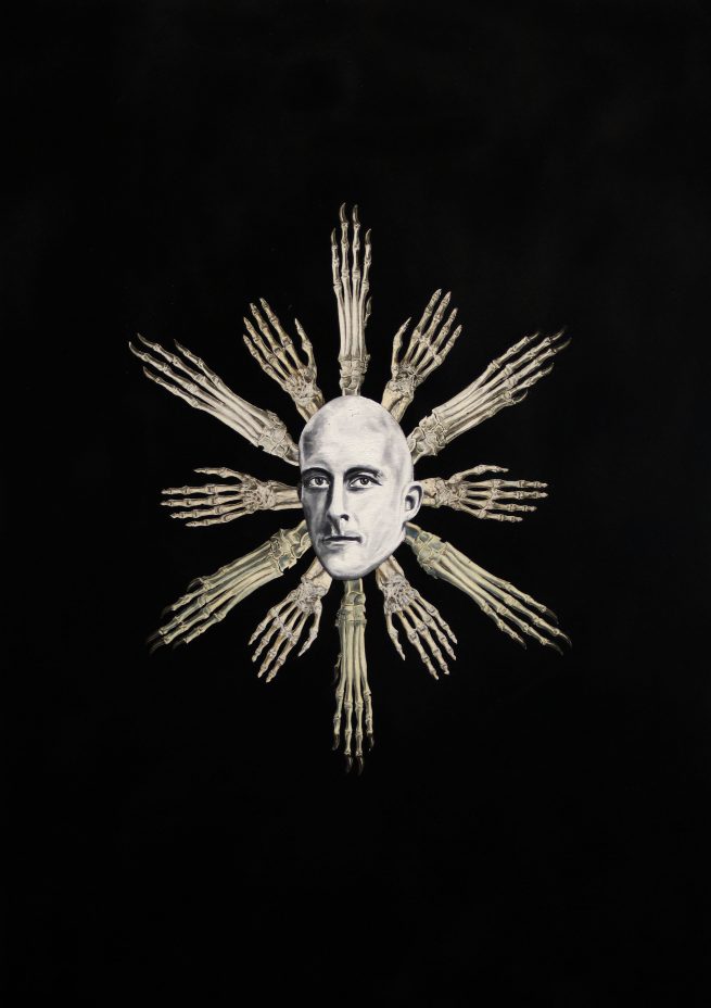 2015 Oil on canvas, steel engraving and spray paint on paper 70 x 50 cm