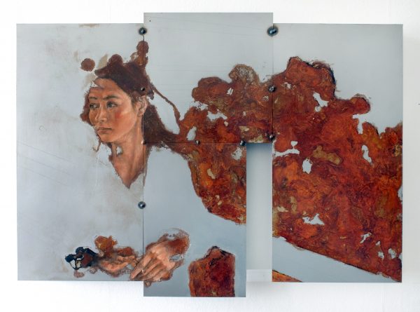2016 Oil and oxidations on 4 welded steel plates 55 x 75cm