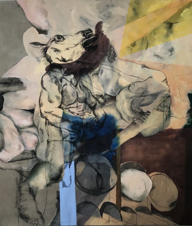 2018 Acrylic, coal and spray-paint on linen canvas 180 x 140 cm