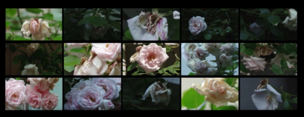 The Video works are all showing various places or objects that change over time, but rather than showing a linear time frame, there are multiple screens to show all the changes at the same time, in order to explore a notion of timelessness.