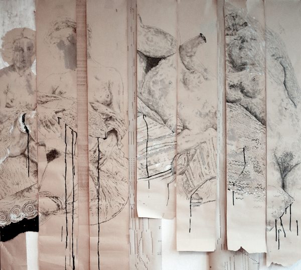 2014 Ink, acrylic and oil on antique paper and piano rolls 150 x 180 cm