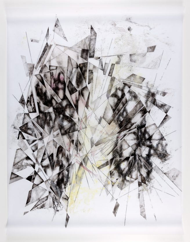 Indian ink, acrylic, salt on polyester drafting film translucent matte