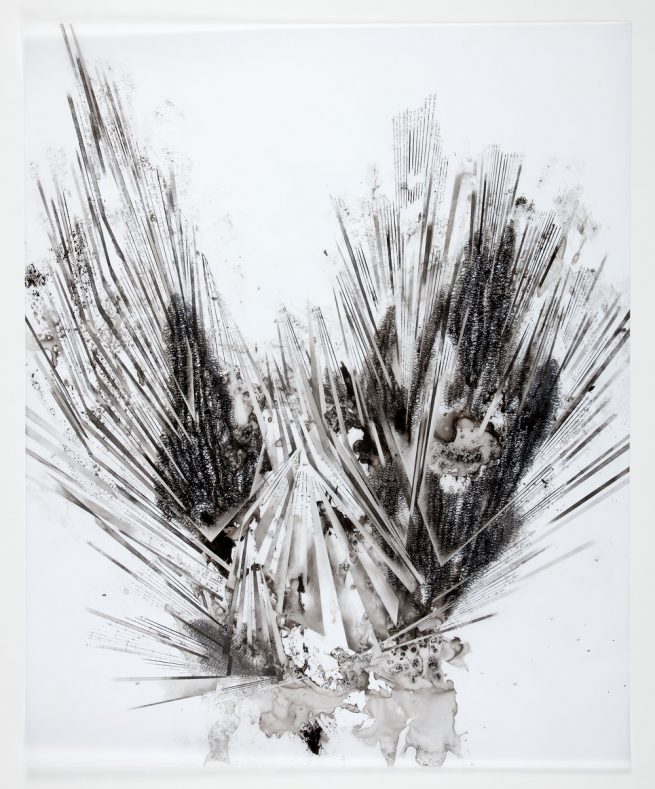 Indian ink, graphite, salt on polyester drafting film translucent matte