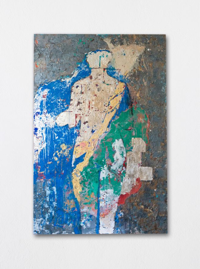 Mineral painting on wood Gold & silver leaf 150 x 100 cm