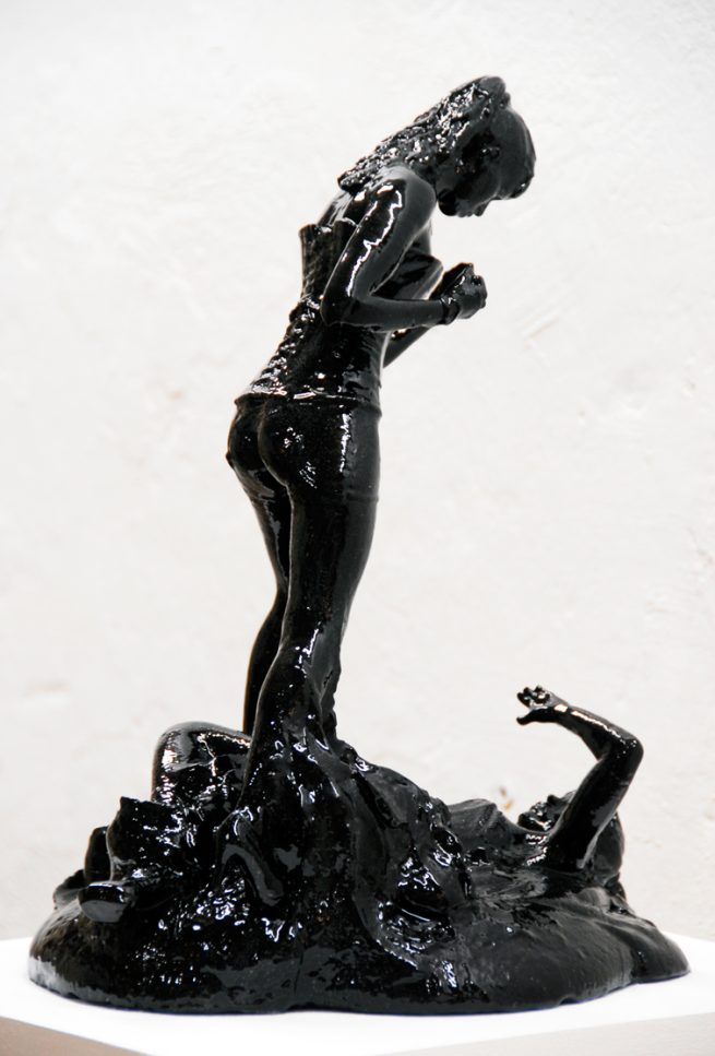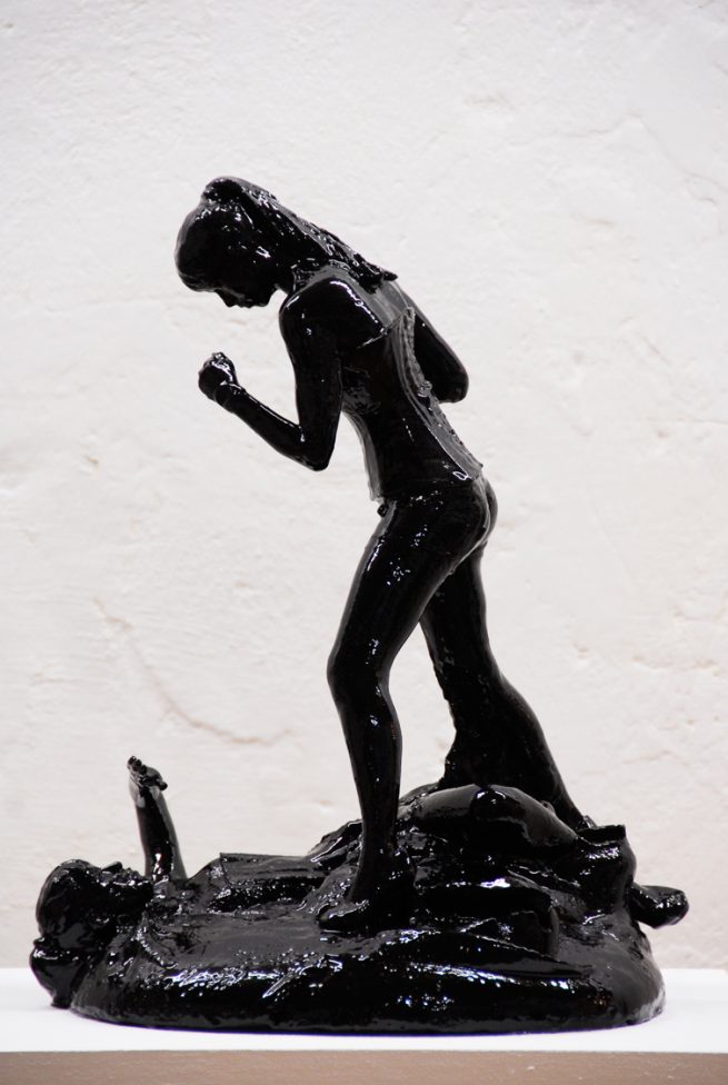 The “Vania” Sculpture has the intention of showing the attachment to winning or succeeding in life, of overcoming ones difficulties. The joke of it is that as Vania wins, she also loses as part of her is beaten as she stands over herself.