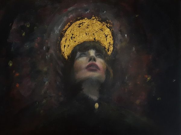 Digital photography with digital and analog intervention, gold leaf 23 carats, makeup, oil paint and watercolor on Hahnemühle fine art photo rag paper