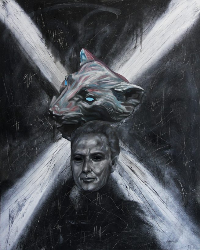 2016 Pencil, charcoal and oil on paper, spray paint and oil on canvas 100 x 80 cm