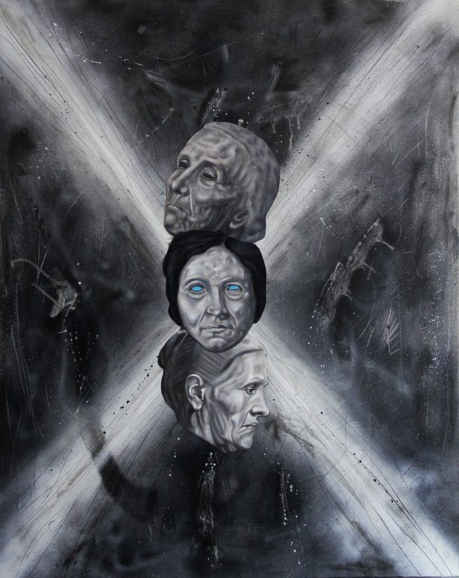 2016 Pencil, charcoal and oil on paper, spray paint and oil on canvas 100 x 80 cm