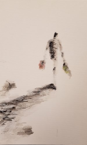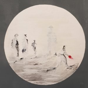 I paint almost exclusively on wood panels. I like to mix different materials during the painting process such as, oil, pencil, chalk, stains, charcoal, all that leaves traces behind.