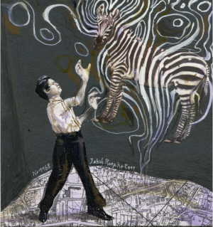 Following the surrealist tradition of Max Ernst and Giorgio de Chirico his tiny collages seem to reference the uncertainty and adversity of 21th century life; yet while the scenes hover between hopelessness and destruction, Roepke’s central figures always seem on the verge of tipping the fight in their favour.