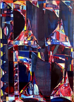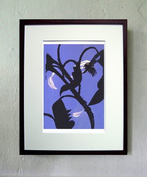 To understand these images, Blume has gone more deeply into research and exploration. During their creation, the paintings pass through several phases, in an interplay between both analog and digital, high art and low art. Once information, in the form of sketches, is collected outside from nature, they are brought into the studio, cut out, pasted, edited, composed, and roughly painted. This process Blume carries out is uniquely utilizing his working methodology and technique. The transformation begins emerging narratives within the progress. The final image is full of mystical creatures and intuitive abstractions. They reference an indigenous world of rituals, ghosts and legends, and are built of the foundations of life and a very original knowledge – the flora and its diversity.