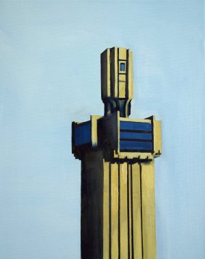 Within my work I reduce the urban space to contain only monolithic architecture in front of a wide horizon. The sculptural role of architecture in a landscape allows me to focus on the two central aspects of my paintings: color and light.