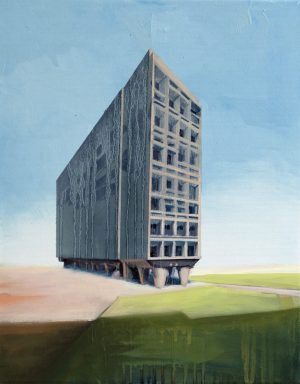 Currently I am researching distinct architectural styles in post-war modernism and the so-called „Brutalism“. The overlay of utopian concepts, reality and ruin creates a field of tension for my painting.