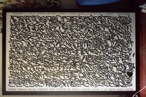 I suppose I wish to destroy more than explain, to advertise my brokenness instead of feigning a solution. Can I make something that’s formidable-looking and not have it be called graffiti or macho? Can I combine whatever I want on a surface, and, more importantly, do you hear it all? The lines that I write are stories that beg for your stories. Like music does.