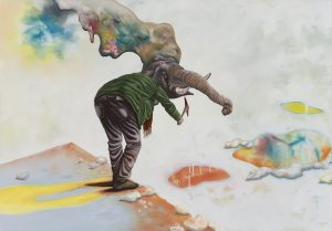 Doherty’s work up to now has been filled with twisted geological forms and unnerving combinations of the human and animal. The uncertain and unseen are provided with a visual platform to be physically digested, the canvas becomes a stage for the subconscious to act out its twisted plays. Doherty’s paintings present us with a curious and delectable dish that will not necessarily be smoothly digested nor nourish its spectator. Her work speaks to us of the human condition and our place in the world.