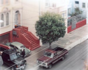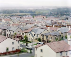 - Almost four years before the publication of this book I became more and more aware of the suburban worlds outside the kaleidoskopic city life of the Bay Area. A scholarship took me to this side of the US, kept me well fed and busy at school (CCAC, Oakland). Leaving the Bay Area one day by car, I was quite amazed how the golden Californian hills along the highway got suddenly covered with absolute order. Some kind of residential development spread here with a vast number of houses and an adjacent super-mall – all out of the same mould. Did it fall from the sky? Cows peacefully grazed upon the remaining farmland. This place had a name and I visited “Oakhill” a couple of times with my camera until I had to return to Germany.The encounter with this suburban habitat stayed in my head nevertheless. Especially since I started to realise that a similar kind of attitude shaped new settlements, malls and business-parks around Berlin, along the highways of northern France, on the island Mallorca – basically wherever new areas are developed – built with prefabricated elements, the spirit of profit and no sense of culture and history. In 1996 I decided to take a closer look at this phenomenon and returned for three months to California. My travels in this “future laboratory” took me from the Bay Area and its surroundings towards the megalopolis of Los Angeles, to the desert gardens in San Bernardino County and back. Almost everywhere I came, private residential developments popped out of the ground, neatly separated after a families financial income and aspired status. Along rolled a flood of tv commercials, newspaper ads and huge billboards, whispering promises about a better life.